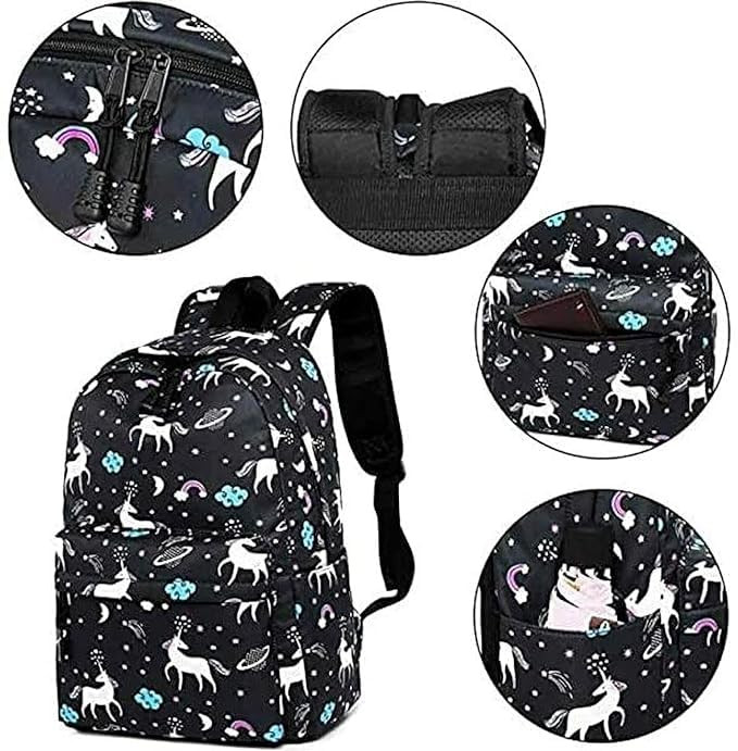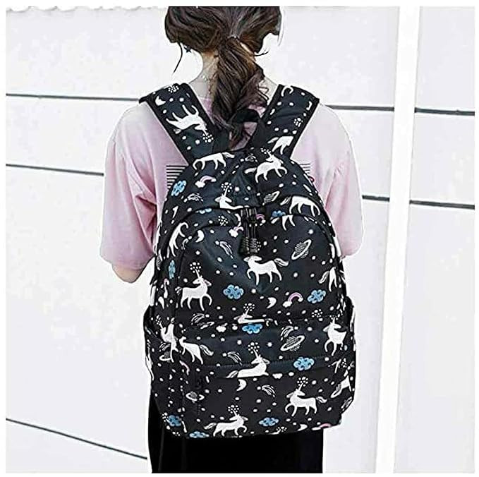 Casual Backpack Collage bag black unicorn School Bag Tuition Bag College Backpack For Girls & Women 15 Liters Waterproof School Bag