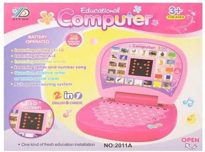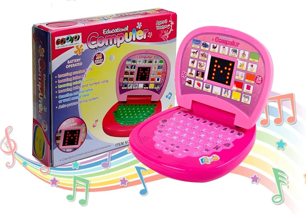 Our Kids pre school laptop can improve the child's imagination, logical thinking, hand-eye coordination, hands-on ability. Colorful, eye-catching,Safe and environmentally friendly non-toxic,Smooth handling does not hurt the hand. Ideal for help your kids to learn the alphabet with Images sound and spelling,arouse children's create inspiration. Size: About 21x17x4.5cm.Package Including:1 x Toy.Requires 3 X AA Batteries Which Are Supplied(not include). Language: English.