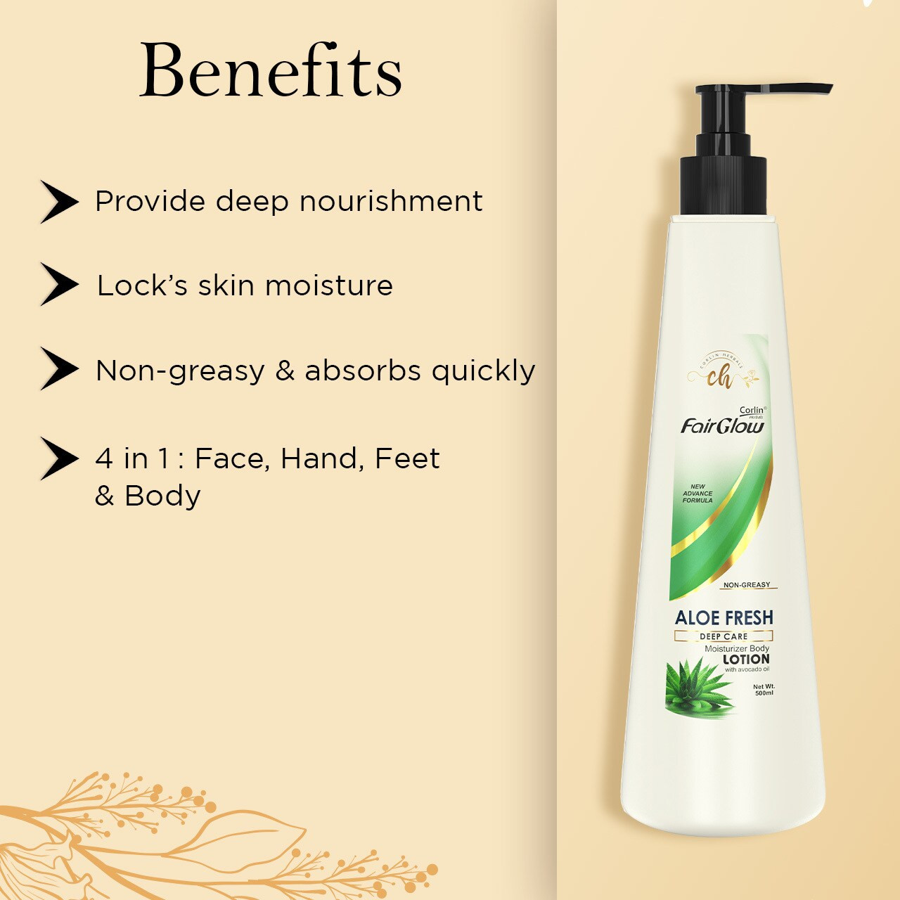 This lotion is a unique blend of active moisturizers and essential oils like aloe vera, avocado oil, and vitamin-E that provides deep nourishment to your skin naturally. It?s non-Greasy and gets absorbed easily to keep your skin hydrated and lock down the skin?s moisture