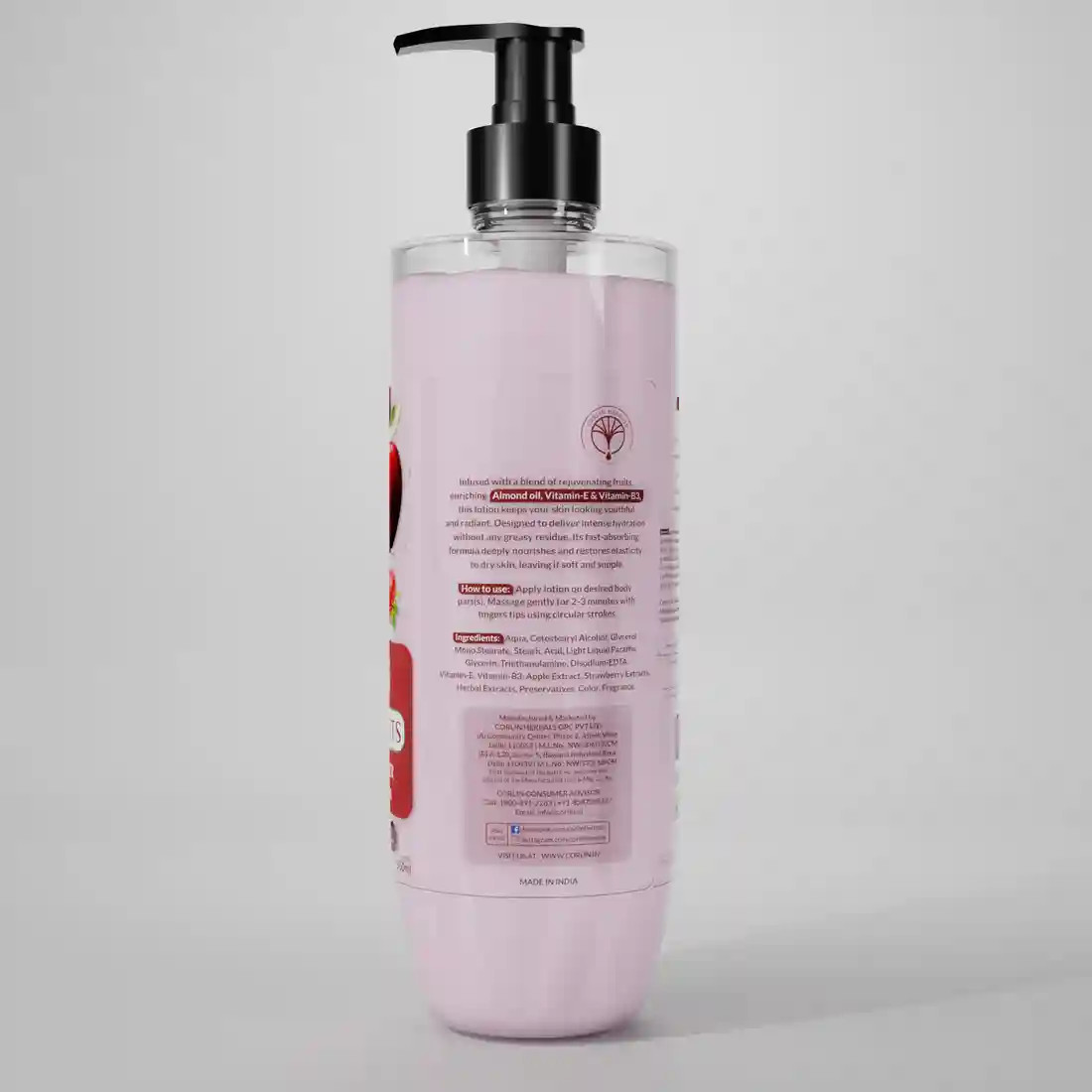 Infused with a blend of rejuvenating fruits, enriching almond oil, and nourishing vitamin E, this lotion keeps your skin looking youthful and radiant. Designed to deliver intense hydration without any greasy residue. Its fast-absorbing formula deeply nourishes and restores elasticity to dry skin, leaving it soft and supple.