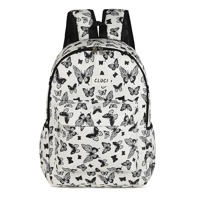 Heavy Duty White Butterfly Printed Backpack Large Capacity Waterproof Lightweight Multifunction Commercial, Travel Fashion, Kids, Children Rucksack for Boys and Girls