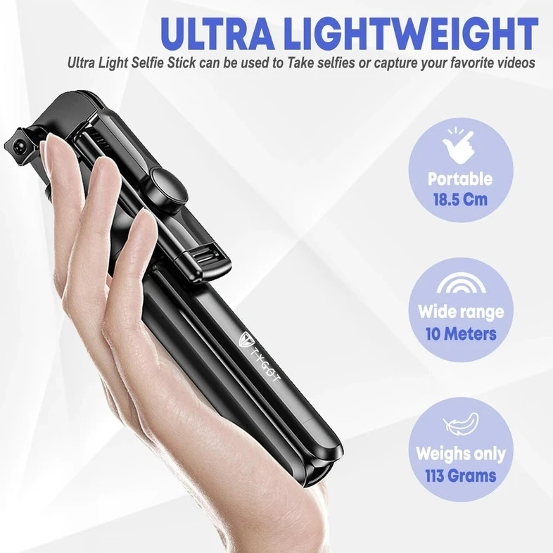 Tygot Bluetooth Extendable Selfie Stick with Wireless Remote and Tripod Stand – 3-in-1 Multifunctional Selfie Companion